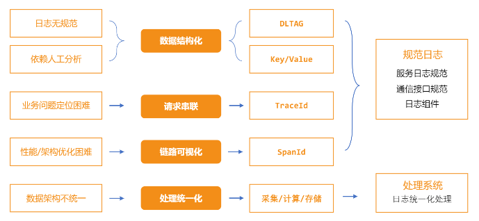 DLTag -> 标记日志的功能(sauth/notify) TraceId/SpanId -> 跨进程requestid